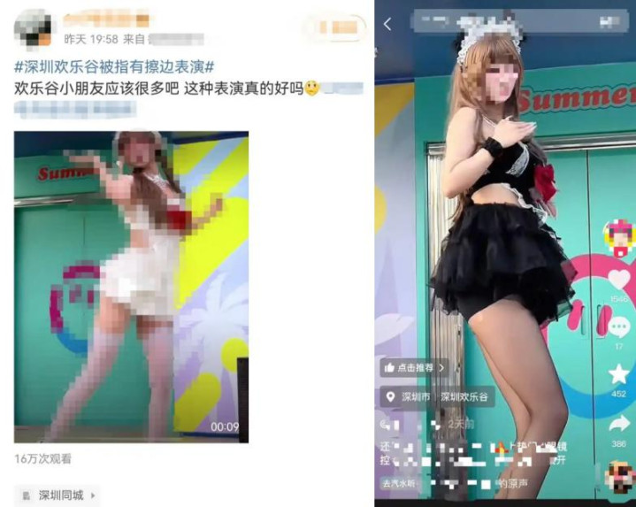 据网友发布的视频显示,该场表演中,部分演员身着短裙、制服、吊带袜等服饰进行舞蹈演出,其表情及部分动作被指“低俗”,不少网友质疑此类表演与游乐场的公共场景定位不符,“在适合全年龄段游玩的场所呈现这类内容,是否恰当?”